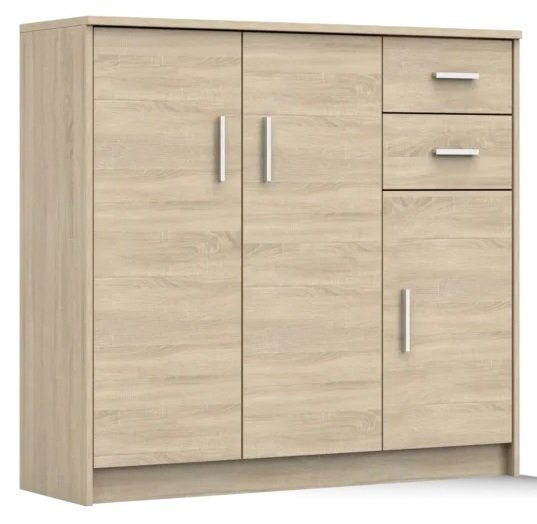 Ta omara za čevlje je zasnovana z mislijo na uporabnost. Na eni strani nudi dve policama, ki so idealne za shranjevanje različnih tipov čevljev, od športnih do elegantnih. Na drugi strani pa se nahajajo dva dvižna predala, ki sta odlična za shranjevanje dodatnih stvari, kot so čevljarska oprema ali sezonski dodatki. Manjša omarica na koncu pa nudi še dodaten prostor za shranjevanje, kar pomeni, da boste imeli vse svoje potrebščine na enem mestu.