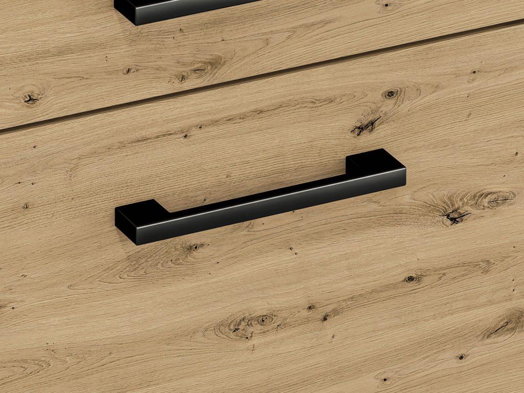 - Kombinacija očitno zrnatega hrastovega Dekora s črnimi ročaji in nogami je odlična rešitev za sodobno notranjost.