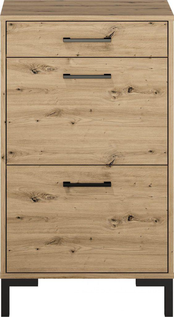 Barva korpusa in fronta v hrastu doda pridih naravne elegance, ki se popolnoma ujema z različnimi stili notranje opreme. Njena prefinjena oblika in gladke linije bodo zagotovo postale osrednja točka v vašem hodniku ali garderobi.