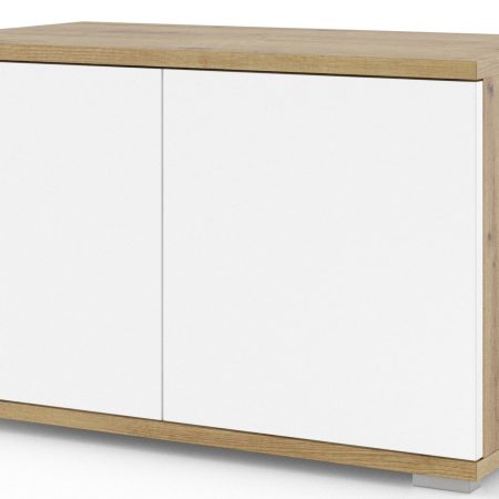 Omara za čevlje Sevilla ima kompaktne dimenzije 70x40x42 cm, kar omogoča enostavno umeščanje v različne prostore vašega doma. Izdelana je iz visokokakovostne 16 mm laminirane plošče, ki zagotavlja trpežnost in dolgo življenjsko dobo. Kombinacija hrastovega artisan korpusa in bele fronte prinaša svežino in svetlost v vsak prostor.