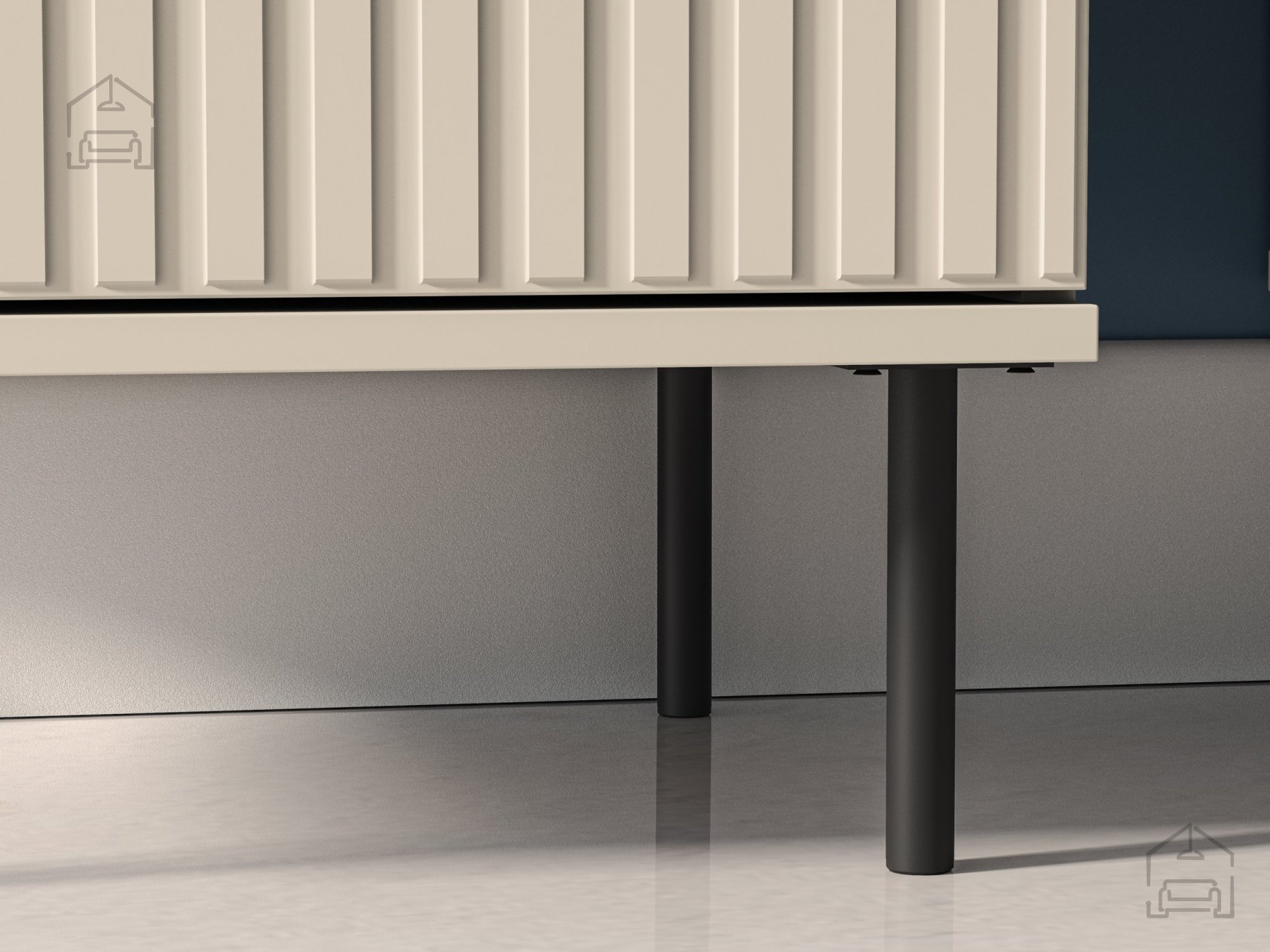 Omara je okrašena z nežnimi žlebovi, ki dodajajo subtilnost in prefinjenost. Izrezljani detajli ustvarjajo čudovit kontrast, ki pritegne pozornost vsakega opazovalca. Ta oblikovalska poteza omari dodaja edinstveno privlačnost, ki bo navdušila vse vaše goste.