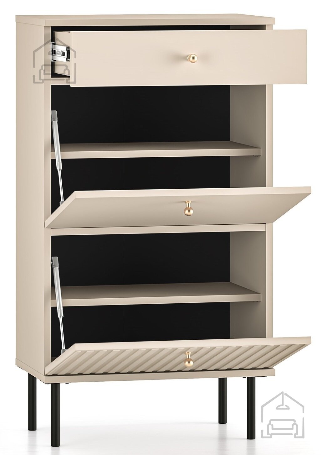 Omara za čevlje Sophie 13 je zasnovana z mislijo na vaše vsakodnevne potrebe. Mehko zapiranje vrat omogoča tiho in nežno uporabo, kar prispeva k dolgotrajni funkcionalnosti omare. Poleg tega omara ponuja dovolj prostora za shranjevanje več parov čevljev, kar vam omogoča, da ohranite vaš prostor urejen in organiziran.