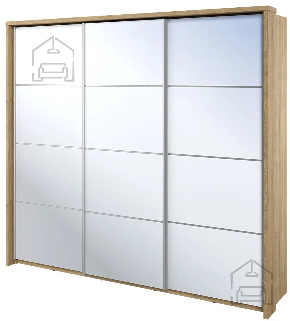 LED osvetlitev: daDimenzije: 2400x2190x590 mm Omara z drsnim ogledalom AR-27 ponuja veliko praktičnega prostora za shranjevanje. Zahvaljujoč ogledalom na sprednjih straneh optično poveča notranjost.