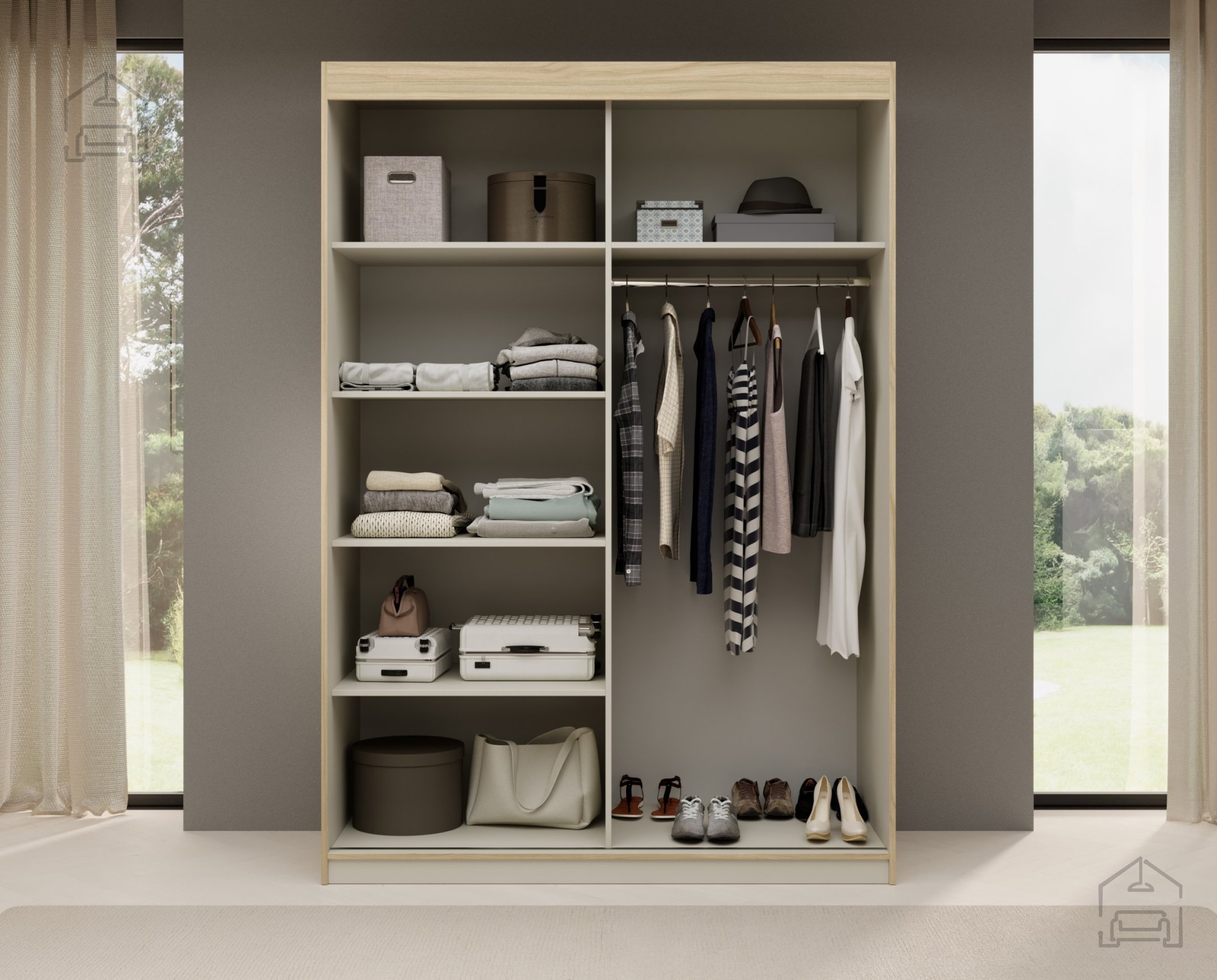 Drsna omara Atson 150 je prostorna in elegantna možnost za shranjevanje, ki združuje funkcionalnost s sodobnim dizajnom. To omaro, izdelano iz visokokakovostnih materialov, odlikuje modna oblika in estetska obdelava hrasta, ki ji daje eleganten in naraven videz ter se odlično ujema z različnimi notranjimi ureditvami.