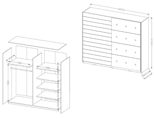 Obilica prostora: dimenzije 220x61x210 cm zagotavljajo dovolj prostora za vse vaše potrebe shranjevanja.Kakovostni materiali: laminirana plošča debeline 16 mm zagotavlja vzdržljivost in trpežnost.Elegantna estetika: barva carbon hrast je vedno v trendu in se prilagaja vsakemu oblikovalskemu stilu.Enostavno vzdrževanje: površina je zasnovana za hitro in enostavno čiščenje.Izdelano v EU: izdelek prihaja iz priznane tovarne Helvetia meble na Poljskem, kar zagotavlja visoke proizvodne standarde. Zakaj izbrati garderobno omaro Galaxy?Če iščete garderobno omaro, ki združuje funkcionalnost, estetiko in vzdržljivost, je Garderobna omara Galaxy prava izbira za vas. Njena prostornost in premišljen dizajn omogočata, da bo postala nepogrešljiv del vašega doma, hkrati pa bo služila kot osrednji dekorativni element v vašem prostoru. Poleg tega je zaradi kakovostnih materialov in natančne izdelave omara Galaxy odlična dolgoročna investicija. Ne odlašajte in si zagotovite svojo garderobno omaro Galaxy že danes ter uživajte v njenem brezčasnem šarmu in praktičnosti. To je kos pohištva, ki ne bo le izpolnil vaših pričakovanj, temveč jih bo presegel. | Material: Iveral Barva: Bela
