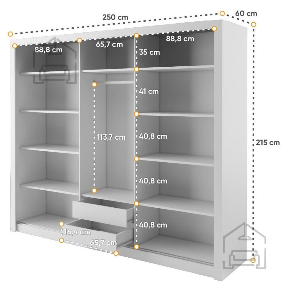 LED osvetlitev: da, za doplačiloDimenzije: 2500x2150x600 mm Trokrilna garderobna omara ID-11.