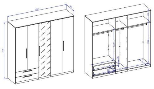 Dimenzije: 225x60x215 cm – idealne za različne velikosti prostorov.