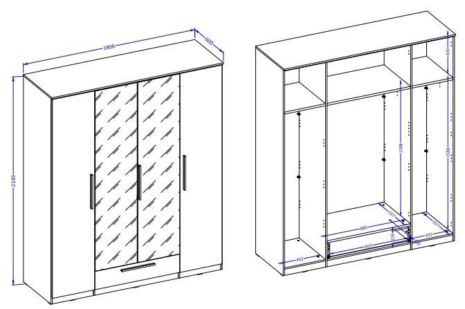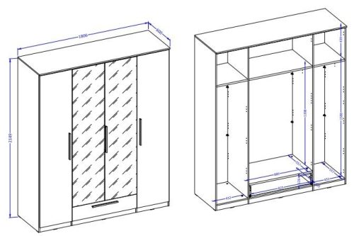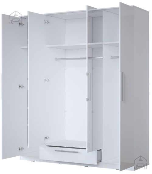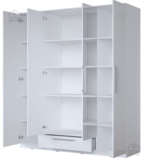 Omara je zasnovana z mislijo na uporabnika. Ponuja štiri vrata in en predal, kar omogoča optimalno organizacijo vaših oblačil, obutve in dodatkov. Vsak del omare je skrbno zasnovan, da vam ponudi kar največ prostora za shranjevanje, s čimer bo vaša garderoba vedno urejena in pregledna.