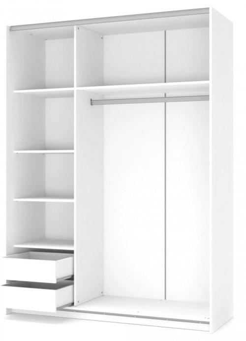 Čudovita garderobna omara Lima S-1 z drsnimi vrati je odlična rešitev za shranjevanje vaših oblačil. V svoji notranjosti omara ima 5 polic in dva izvlečna predala ter drog za obešanje oblačil. Uredite si vašo spalnico čisto v modernem dizajnu s pomočjo omare z drsnimi vrati.