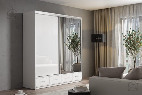 Garderobna omara Lopez je izdelana iz visokokakovostnega iverala, ki zagotavlja trpežnost in dolgotrajno uporabo. Njena elegantna bela površina je enostavna za čiščenje, kar vam omogoča, da omara vedno izgleda kot nova. Vgrajeno ogledalo na vratih ne le vizualno poveča prostor, temveč je tudi praktičen dodatek, ki vam omogoča, da se brez težav pripravite na nov dan.