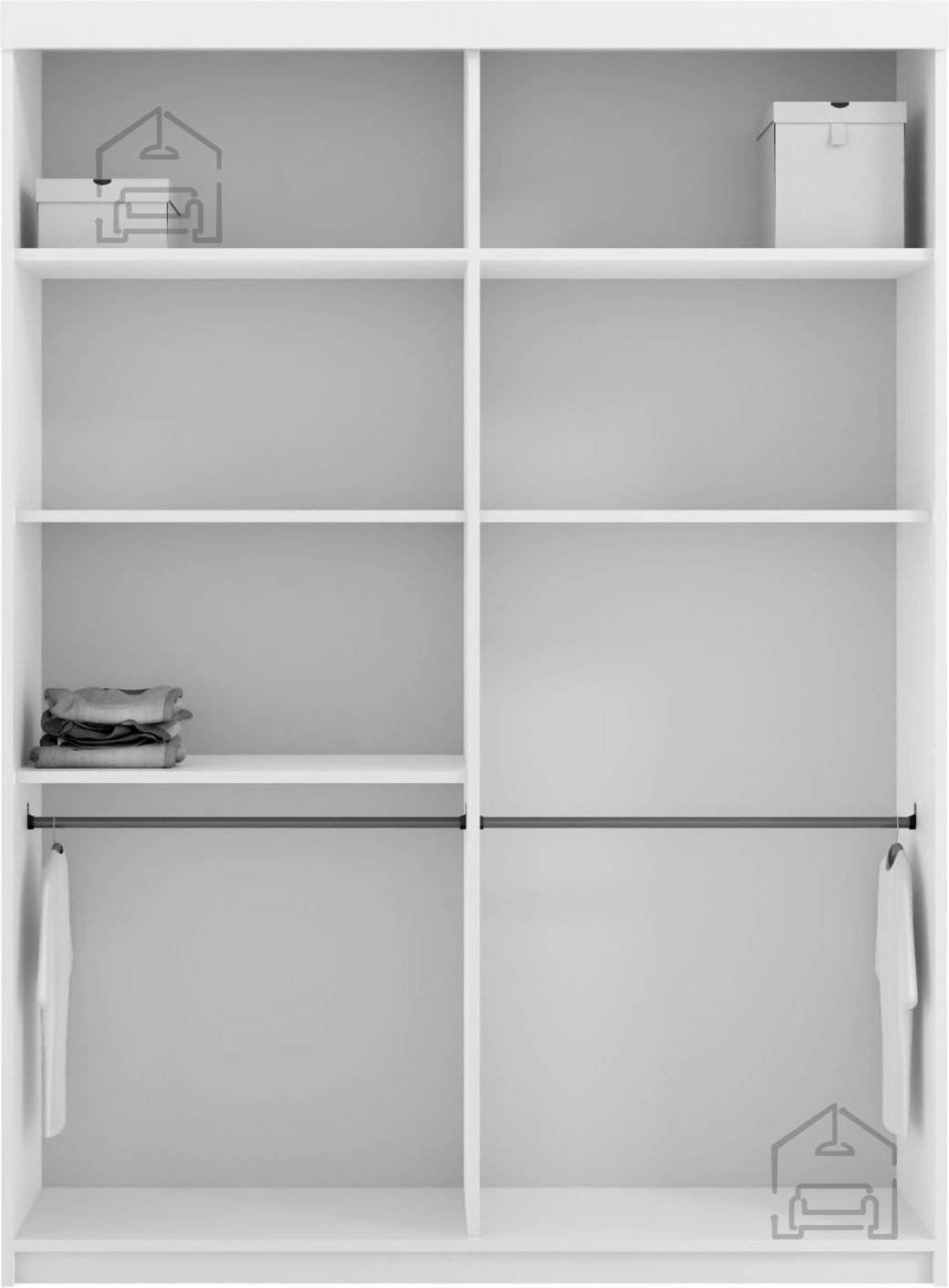 - Prostorna notranjost: s širino 150 cm in globino 62 cm ponuja dovolj prostora za obešanje oblačil, police za dodatke ter predale za manjše predmete.