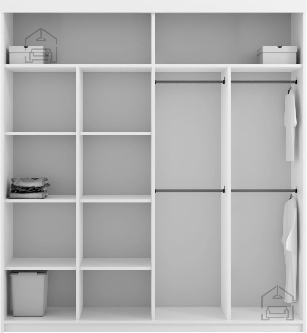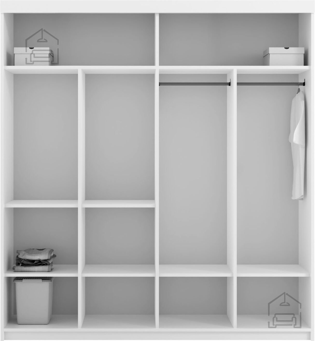- Optimizirano shranjevanje: v notranjosti so police in palica za obešanje, ki ponujajo različne možnosti za organizacijo vaših oblačil.