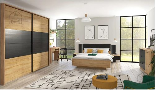 Barva korpusa v samostanskem hrastu prinaša toplino in naravno lepoto, medtem ko črna fronta dodaja kanček sodobne elegance. Ta edinstvena kombinacija ustvarja osupljiv vizualni kontrast, ki je značilnost spalnici Galaxy. Moderna kombinacija temnih barv, vključno z temnim hrastom in črnim lakiranim steklom, bo pritegnila poglede in postala osrednji del vašega prostora.
