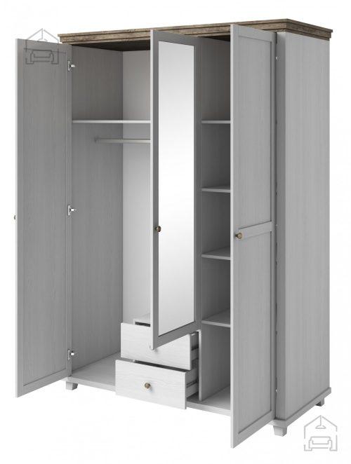 Omara se ponaša z elegantno barvno shemo, ki vključuje korpus v kombinaciji belega pepela in hrasta lefkas, medtem ko je fronta v čisti beli barvi pepela. Ta harmonična kombinacija barv se bo brez težav zlila z različnimi notranjimi dekorji in bo v vaš dom prinesla svežino ter prefinjenost.