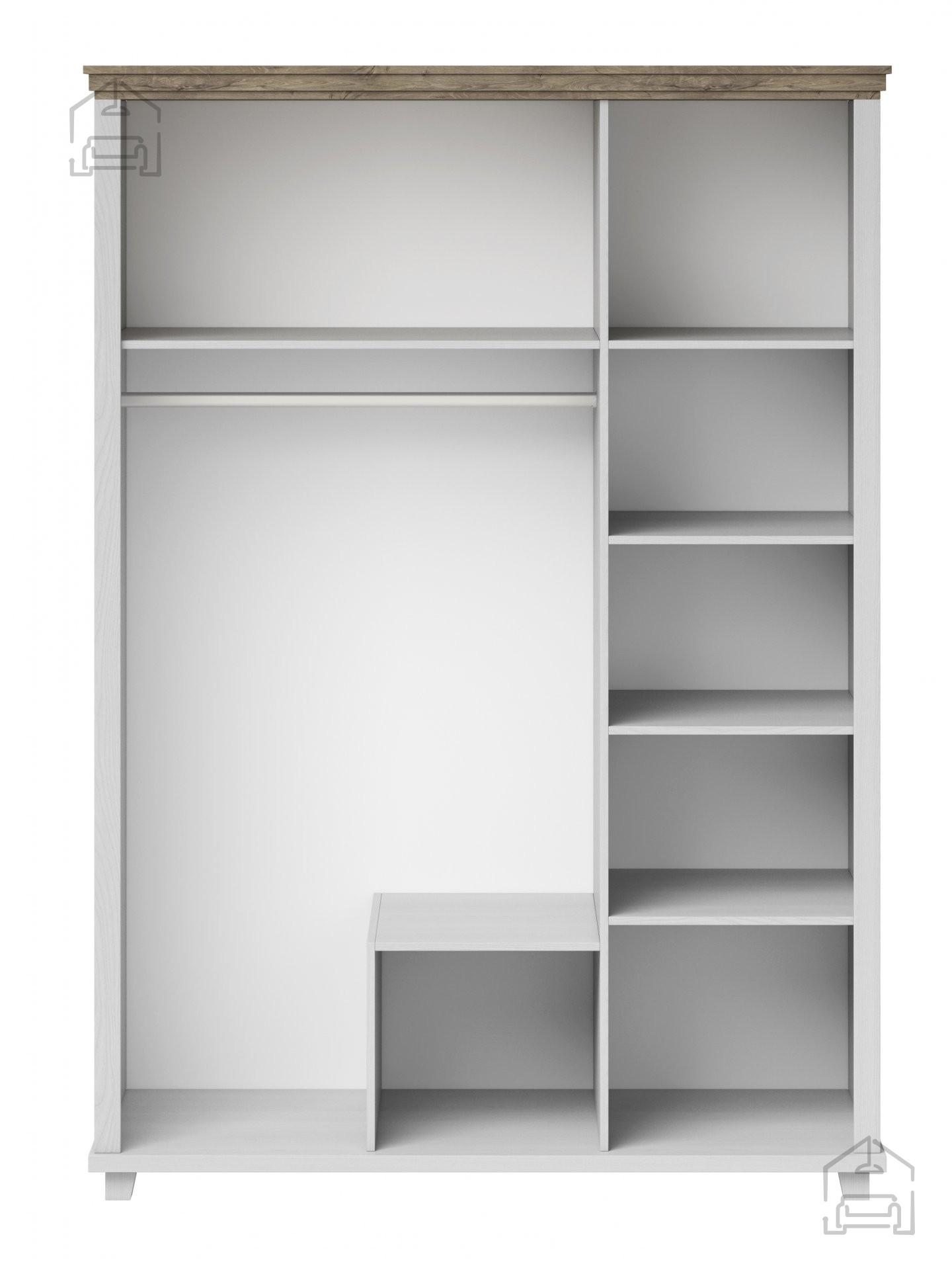 Garderobna omara Evora S ponuja obilico prostora za organizacijo vaših oblačil in dodatkov. Njena notranjost je skrbno zasnovana z različnimi predelki in policami, ki omogočajo enostavno razvrščanje in dostopnost do vaših stvari.