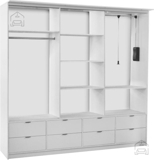 Omara Malaga LED je zasnovana z mislijo na uporabnost in vam ponuja veliko prostora za shranjevanje oblačil, obutve in dodatkov. Prostorne police in robustna obešalna palica zagotavljajo, da bo vsak kos vašega garderobnega repertoarja našel svoje mesto. Poleg tega vam z drsnimi vrati omogoča enostaven dostop do vsebine, tudi v manjših prostorih.