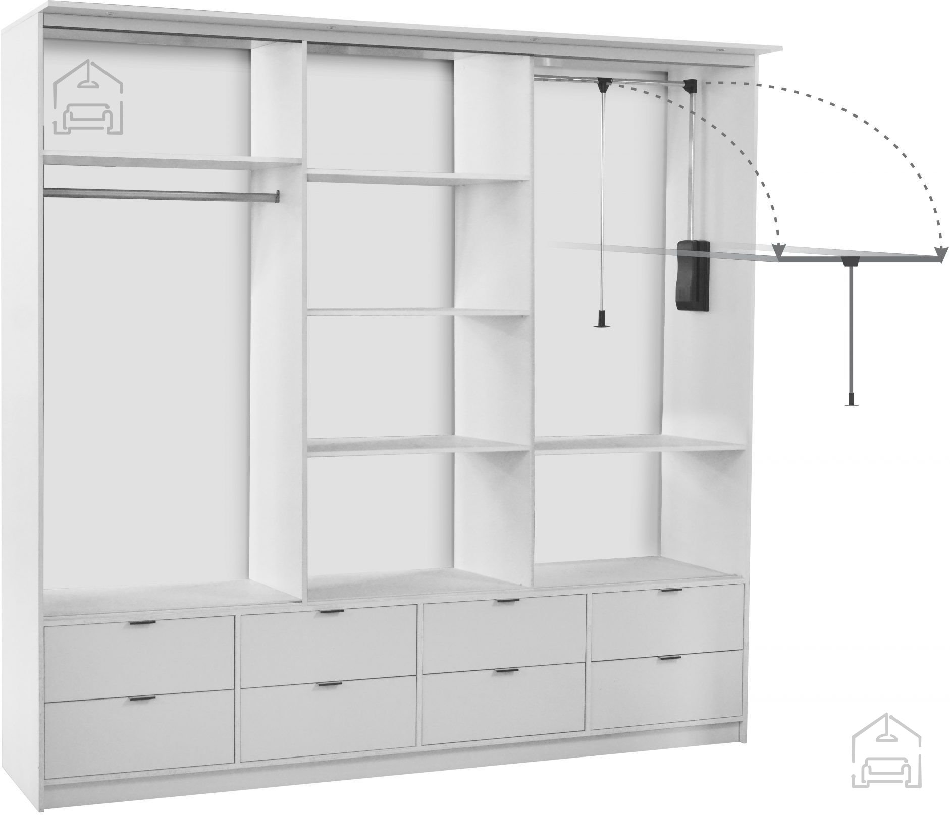 Barva: artisan hrast/beli sijajDimenzije: 2500x2430x700 mm Popolna eleganca in funkcionalnost: garderobna omara Malaga LED - 250 cm