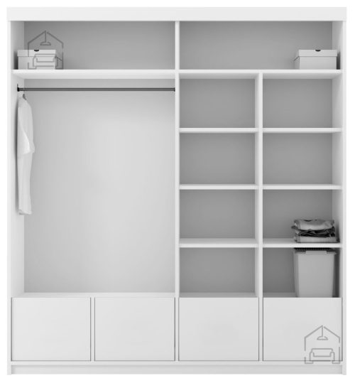 1. Prostorna notranjost: omara Mavilla ponuja obilo prostora za shranjevanje oblačil, dodatkov in drugih osebnih predmetov. Z več policami in obešalnimi palicami je organizacija enostavna, kar vam omogoča, da imate vse na svojem mestu.