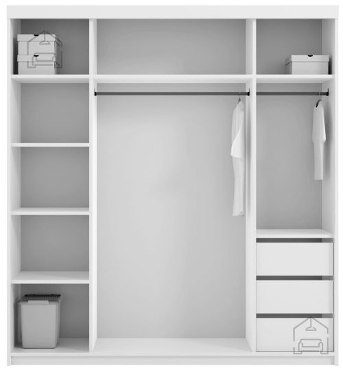Omara Molli se odlično ujema s široko paleto dekorativnih stilov. Ne glede na to, ali je vaš dom opremljen v minimalističnem, skandinavskem ali rustikalnem slogu, ta omara bo brez težav našla svoje mesto in dopolnila vašo notranjo opremo. Investirajte v garderobno omaro Molli in izkusite popolno kombinacijo estetske privlačnosti in praktične uporabnosti. Naredite korak naprej k urejenemu in stilsko dovršenemu domu. | Material: iveral