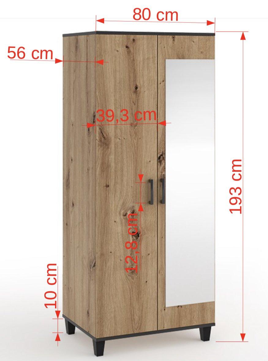Barva: ArtisanDimenzije: 800x1930x560 mm Kolekcija pohištva za spalnico Pola je izdelana iz kakovostnih materialov in bo popolno pohištvo za vašo dnevno sobo.