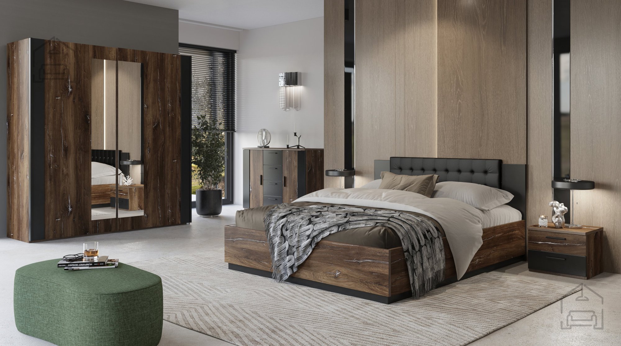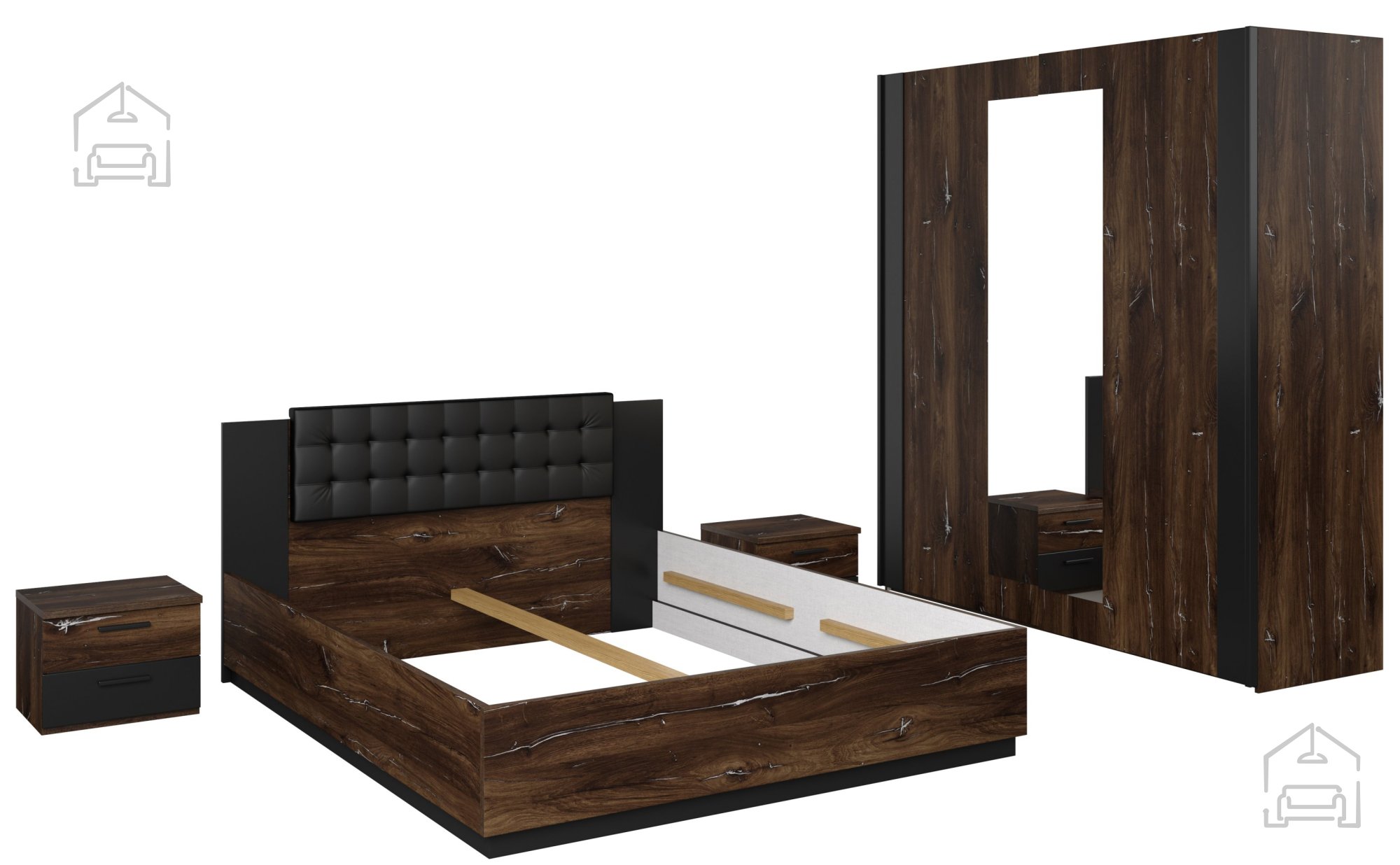 Njen eleganten dizajn v kombinaciji temnega hrasta in črne barve omogoča, da se omarica popolnoma vključi v spalnico Beta, ki je na voljo tudi v barvni različici san remo + bela. Pohištvena kolekcija Beta vključuje udobno posteljo s praktičnim predalom za posteljnino, kar zagotavlja celovito rešitev za vašo spalnico.