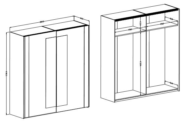 - Prostornost: z dimenzijami 200x64x213 cm ponuja ta omara izjemno veliko prostora za shranjevanje. Razdeljena je na več segmentov, ki omogočajo organizirano shranjevanje različnih vrst oblačil in dodatkov. Police, predali in obešalne palice so strateško razporejeni za maksimalno funkcionalnost.