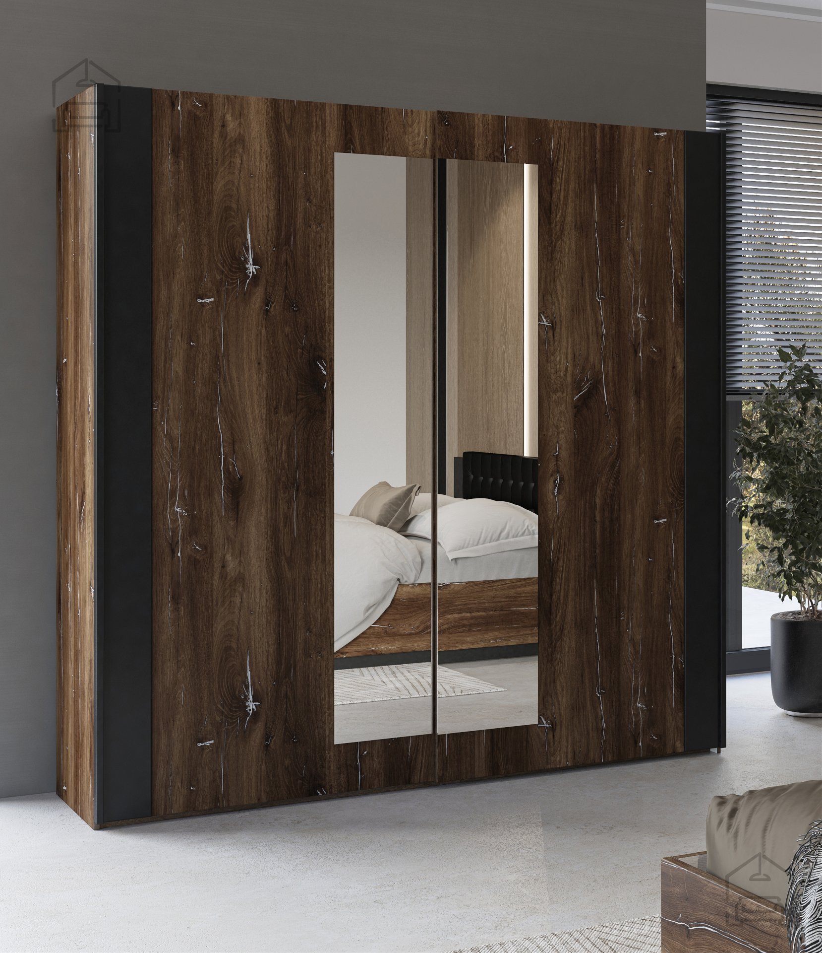- Estetski videz: kombinacija temnega hrasta in črne barve ustvarja sodoben in sofisticiran videz, ki se enostavno prilagaja različnim stilom notranje opreme.