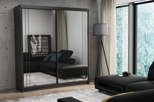 Garderobna omara Smart 200 cm v črni barvi je popolna izbira za vse, ki želijo združiti eleganco s praktičnostjo in prostornostjo. Ta moderna omara, izdelana iz visokokakovostnega iverala, bo dodala pridih sofisticiranosti vsakemu prostoru, hkrati pa zagotavlja obilico prostora za shranjevanje. S svojo elegantno črno barvo in zrcalnimi vrati bo postala osrednji element vaše spalnice ali garderobe.