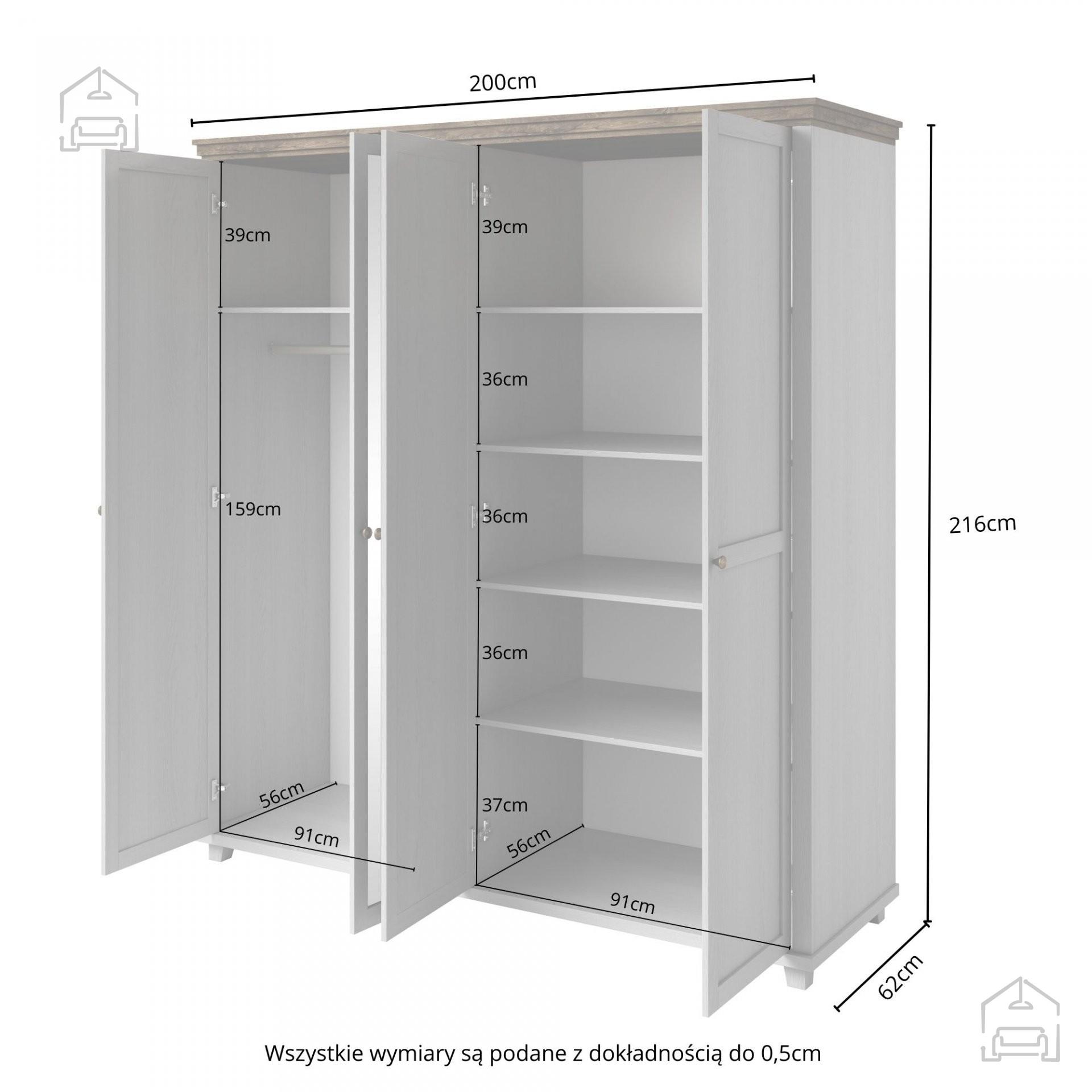 Barva fronta: belaDimenzije: 2210x2100x610 mm Garderobna omara Beta 220 cm - san remo/bela - 22AE1658