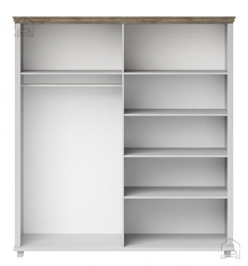 - Elegantna barvna kombinacija: barva korpusa v san remo hrastovem odtenku v kombinaciji z belimi frontami ustvarja brezčasno estetsko privlačnost. Ta barvna shema omogoča, da se omara enostavno prilega različnim stilom notranje opreme, od klasičnega do sodobnega.