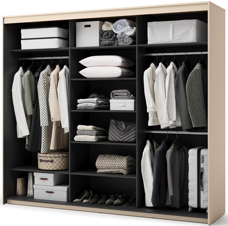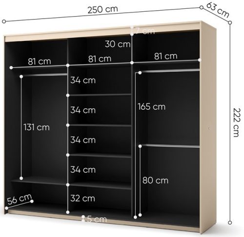 Prostornost: s širino 250 cm ta omara ponuja več kot dovolj prostora, da shranite vsa svoja oblačila, obutev in dodatke.