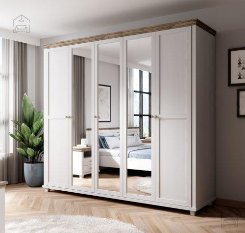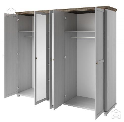 Garderobna omara Evora S vključuje 5 vrat, kar omogoča enostaven dostop do notranjosti. Poleg tega so v omaro integrirana 3 ogledala, ki ne samo da olajšajo izbiro oblačil, temveč tudi optično povečajo prostor in izboljšajo osvetlitev v sobi.