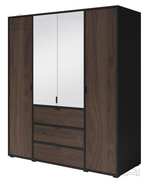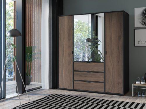 Dimenzije: 1800x2060x650 mm Popoln prostor za garderobno omaro Verona 1 v barvi črna/oreh je prostorna dnevna soba ali spalnica, urejena v moderni in minimalistični notranjosti, ki se popolnoma ujema s stilom pohištva kolekcije Verona. Garderobna omara Verona 1 sestavljena je iz trivratnega sprednjega dela z zunanjim ogledalom, v notranjosti pa so številne police in palica za obešalnike. Velika kapaciteta omare in obsežen sistem predelkov vam omogočata urejeno shranjevanje oblačil za vsako sezono. Pohištvo iz kolekcije Verona je prav tako serija z zelo dizajnerskim značajem in številnimi dodatki. | Material: MDF