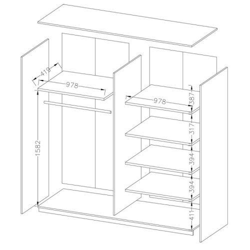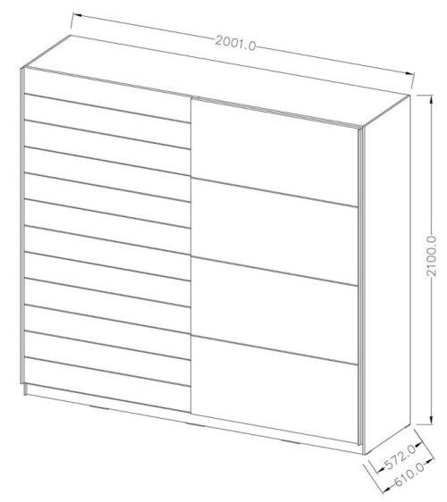 Z dimenzijami 201x61x210 cm, ta omara ponuja obilo prostora za shranjevanje. Z več policami in obešalnimi palicami lahko enostavno organizirate oblačila, obutev in dodatke, kar vam omogoča, da ohranite svoj prostor urejen in pregleden.