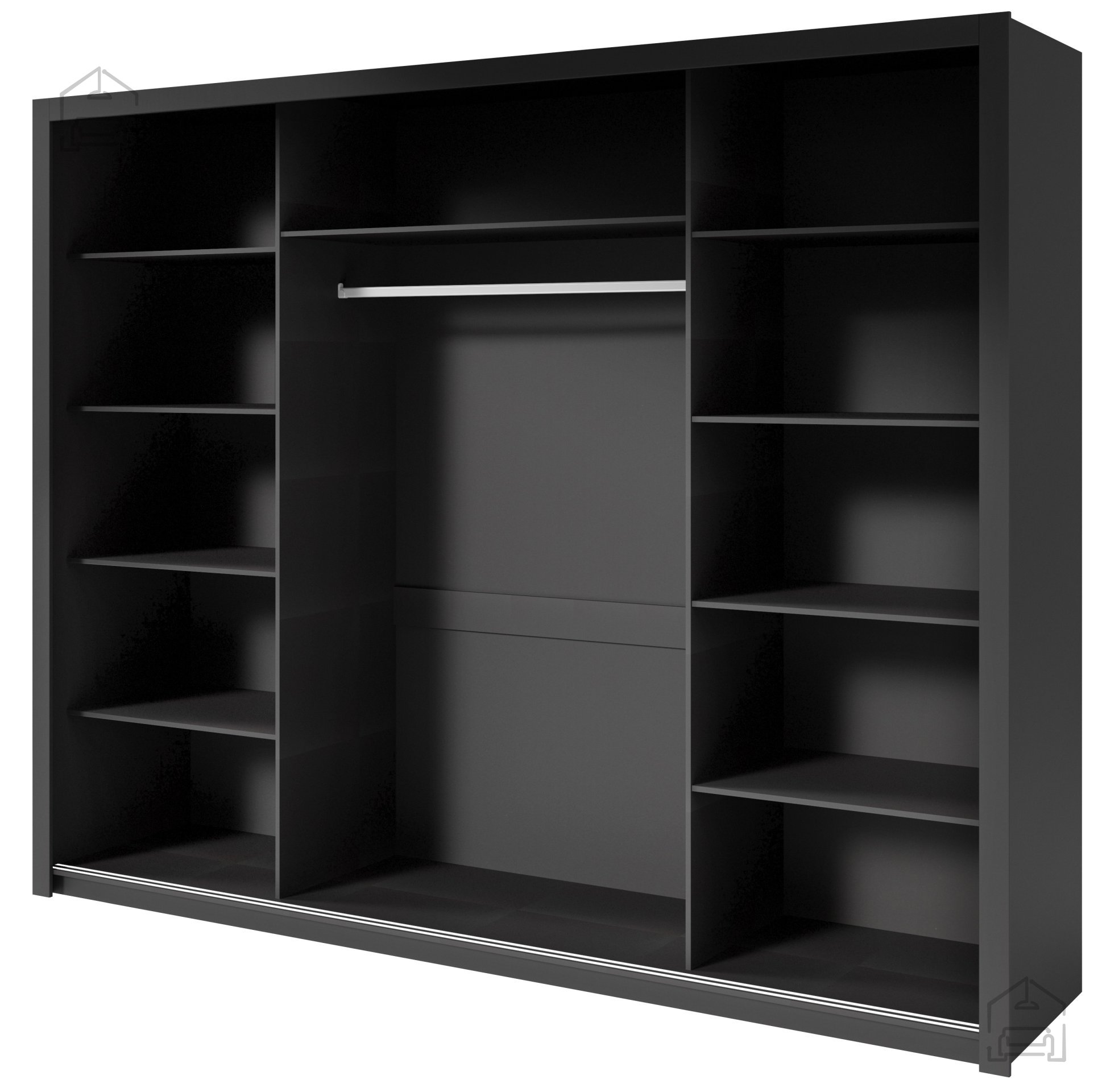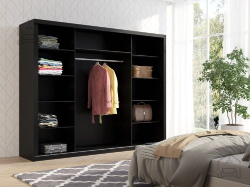 Predstavitev izdelka: garderobna omara z drsnimi vrati Frama 255 cm – črna