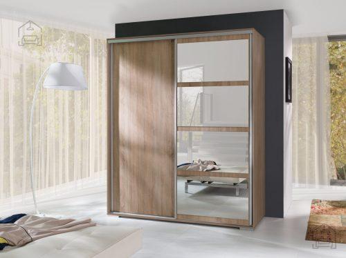 Garderobna omara z drsnimi vrati Leo izdelana iz visokokakovostne laminirane plošče, je odličen predlog za sodobno stanovanje ali hišo. Zaradi tega je vse skupaj odporno na poškodbe, praskanje in izpostavljenost vlagi. Garderobna omara z drsnimi vrati Leo je sestavljena iz drsnih panelnih front, kar bistveno olajša in poveča udobje uporabe. Omara je zelo proporcionalne in oblikovane oblike, ki kljub svoji zmogljivosti ne zavzame veliko prostora in omogoča racionalno uporabo prostega prostora. Garderobna omara z drsnimi vrati Leo je odlična izbira za ljudi, ki obožujejo moderne rešitve in drzen stil.