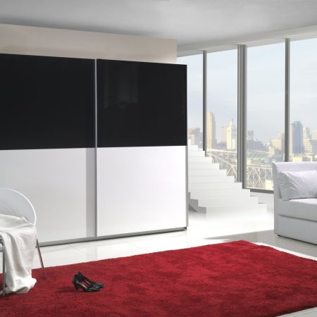 Garderobna omara z drsnimi vrati Lux 6 – bela/črna sijaj: eleganca in funkcionalnost v vašem domu