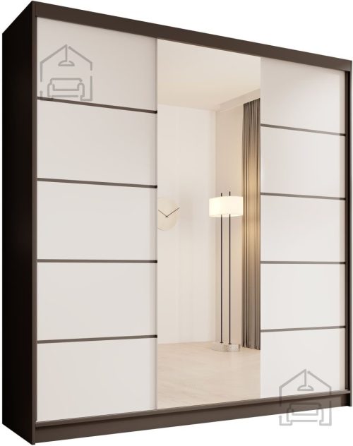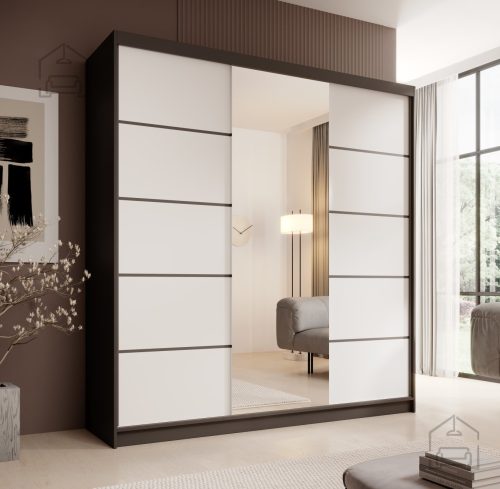 Garderobna omara Sonic z drsnimi vrati, dimenzij 200x58x215 cm, je odlična izbira za vse, ki iščejo popolno ravnotežje med estetiko in praktičnostjo. Ta moderna črna/bela omara se ponaša s kakovostno izdelavo iz laminirane plošče debeline 16 mm, kar zagotavlja dolgo življenjsko dobo in odpornost na vsakodnevno obrabo. Narejena v priznani tovarni ADRK na Poljskem, omara Sonic prinaša evropsko kakovost in dizajn v vaš dom.
