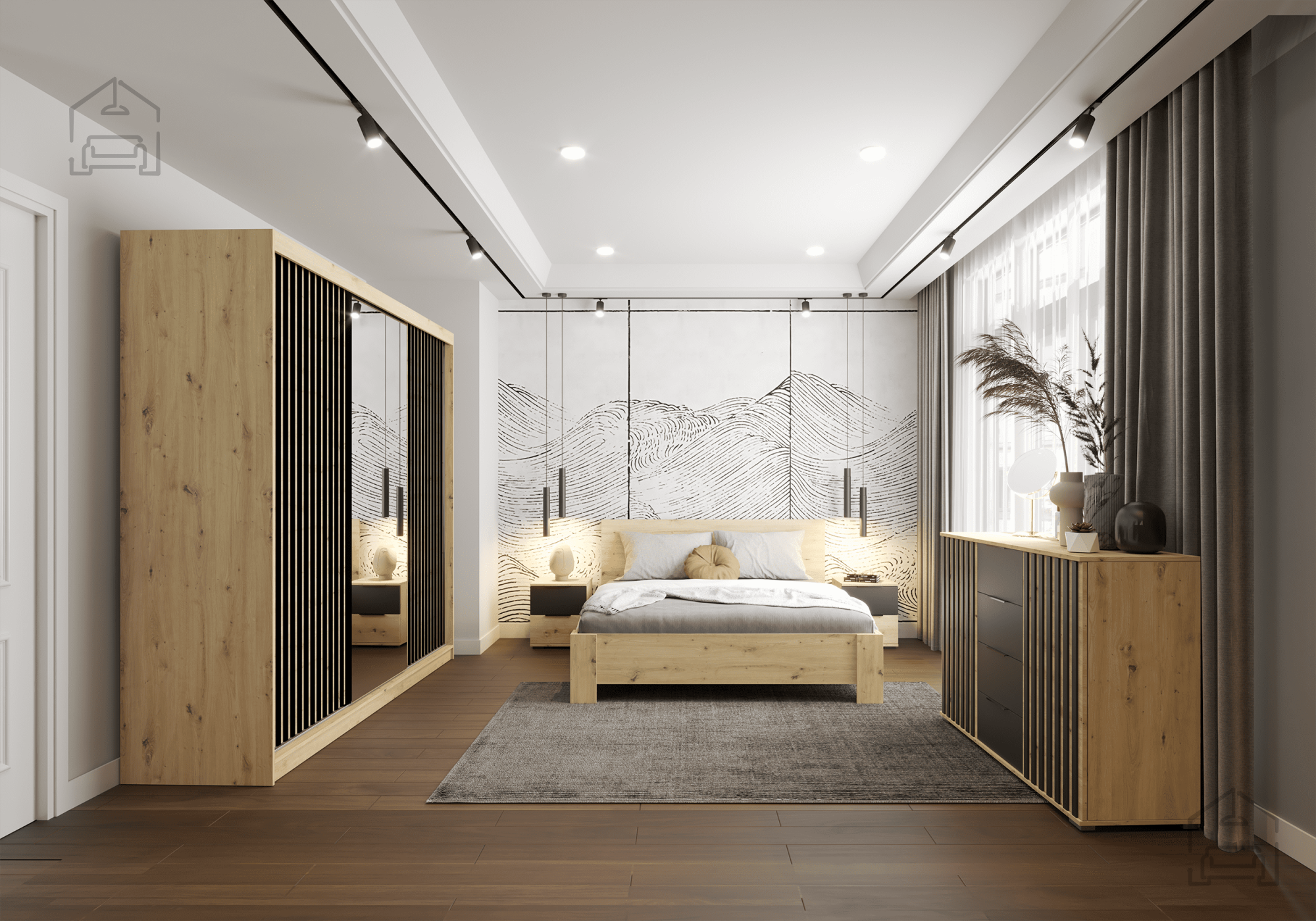 Barva korpusa v samostanskem hrastu prinaša toplino in naravno lepoto, medtem ko črna fronta dodaja kanček sodobne elegance. Ta edinstvena kombinacija ustvarja osupljiv vizualni kontrast, ki je značilnost spalnici Galaxy. Moderna kombinacija temnih barv, vključno z temnim hrastom in črnim lakiranim steklom, bo pritegnila poglede in postala osrednji del vašega prostora.