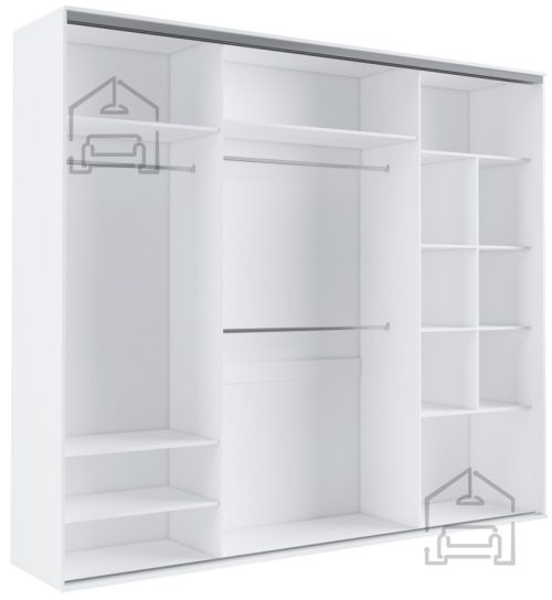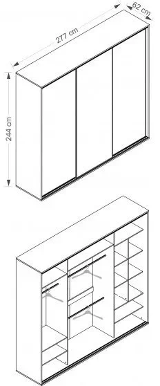 • Prostornost: s svojimi dimenzijami 277x62x244 cm omara ponuja dovolj prostora za shranjevanje vseh vaših oblačil in dodatkov. Drsna vrata omogočajo enostaven dostop do vsebine omare brez potrebe po dodatnem prostoru za odpiranje.