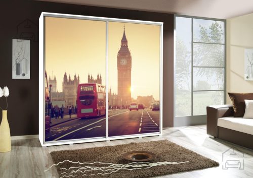 Garderobna omara z drsnimi vrati z grafiko London 1a Penelopa 205 cm