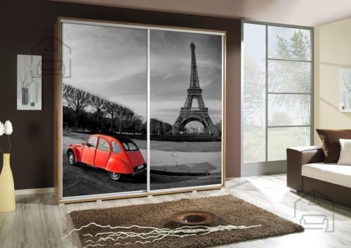 Garderobna omara z drsnimi vrati z grafiko Pariz Penelopa 205 cm