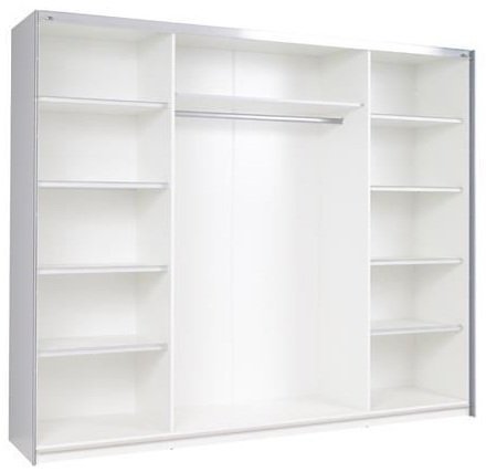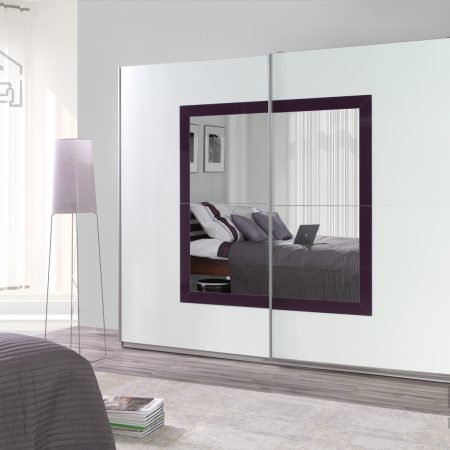 police v notranjosti z aluminijastim profilomDimenzije: 2440x2060x610 mm Garderobna omara z drsnimi vrati z ogledalom Lux 32 - bela/vijolična sijaj