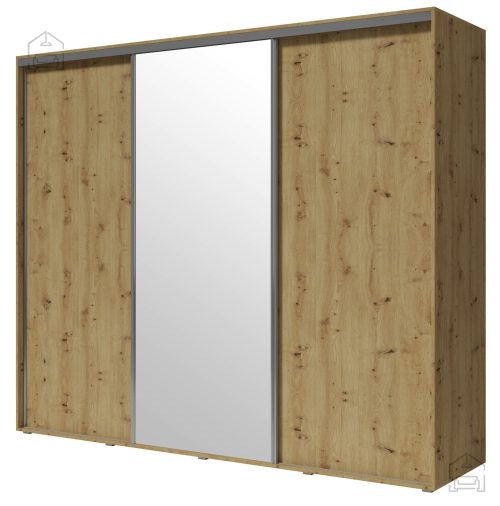 - Estetika in Uporabnost: Ogledalo na drsnih vratih in elegantna hrast artisan barva omogočata, da ta omara postane osrednji dekorativni element vašega doma, medtem ko njena funkcionalnost izpolnjuje vse vaše shranjevalne potrebe.