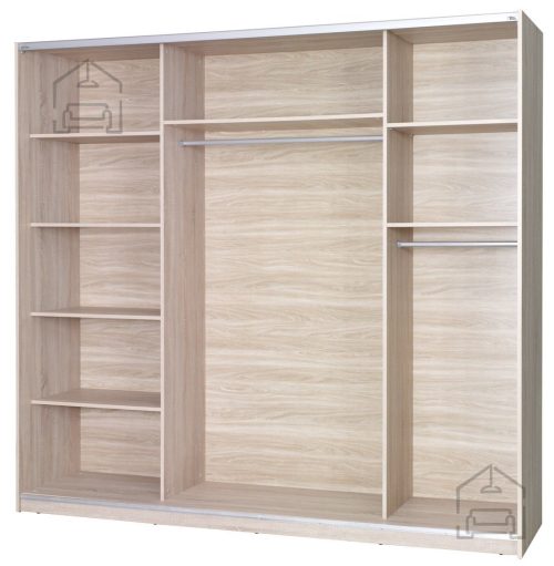 - Prostor za shranjevanje: dimenzije 225x63x211 cm ponujajo obilo prostora za shranjevanje različnih vrst oblačil, obutve in dodatkov. Organizacija notranjosti omare omogoča prilagoditev po vaših potrebah.
