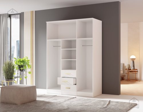 Na voljo v elegantni beli barvi, se ta garderobna omara zlahka prilagodi različnim stilom notranje opreme, od minimalističnega do klasičnega. Njena nevtralna barva omogoča enostavno kombiniranje z drugimi pohištvenimi kosi in dekorativnimi elementi, kar vam omogoča ustvarjanje harmoničnega in estetsko prijetnega prostora.