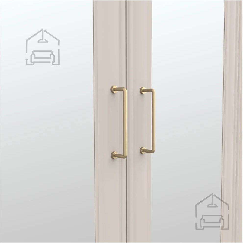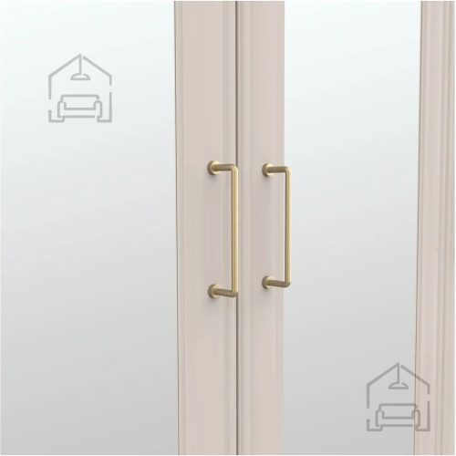 Eleganten dizajn: subtilni okvirji in enotna barvna shema v kašmirju ustvarjajo harmonično celoto, ki se odlično prilega vsakemu modernemu notranjemu dizajnu. Ročaji v barvi brušenega zlata dodajo pridih luksuznosti, ki bo navdušil vsakega obiskovalca.