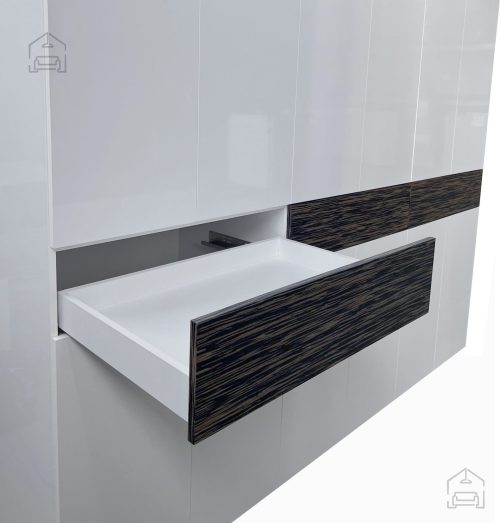 - Sodobna estetika: s svojo elegantno belo sijajno površino in možnostjo izbire med lahkim ali temnim furnirjem, omara Massimo dodaja pridih sodobnega razkošja v vsak prostor.
