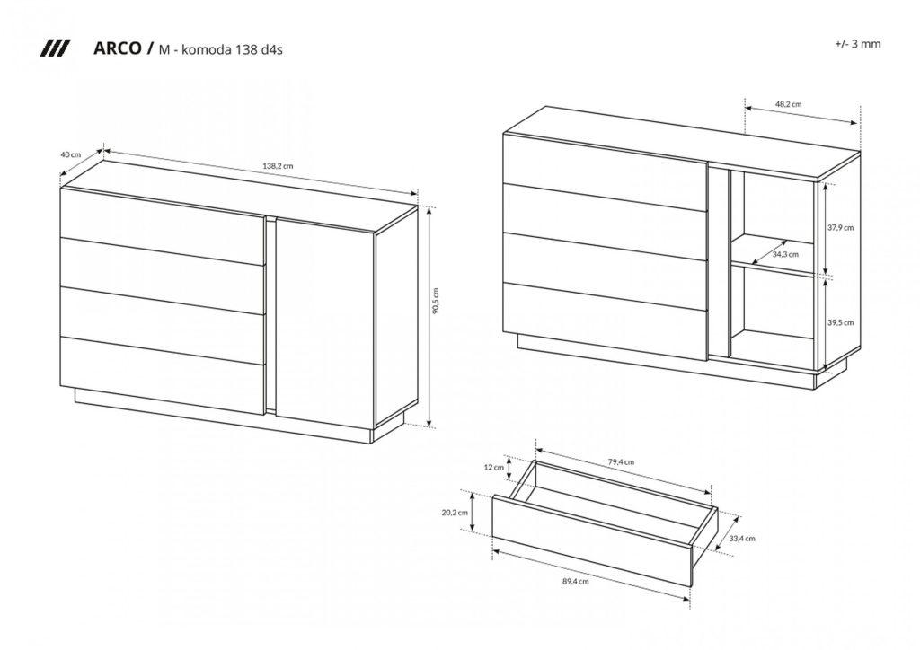 Dimenzije: 1382x905x400 mm Izvirna kolekcija pohištva za spalnico Arco bo vašo sobo naredila moderno in elegantno.