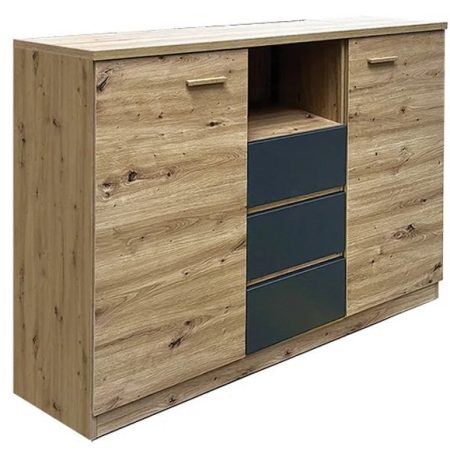 Kombinacija hrasta artisan in grafitne barve ustvarja eleganten kontrast, ki je moderna, a hkrati subtilna. Ta komoda ne bo zgolj funkcionalen kos pohištva, temveč tudi osrednji dekorativni element, ki bo pritegnil poglede vseh gostov. Barvna shema se enostavno prilagaja različnim stilom notranje opreme, od klasičnega do ultramodernega.